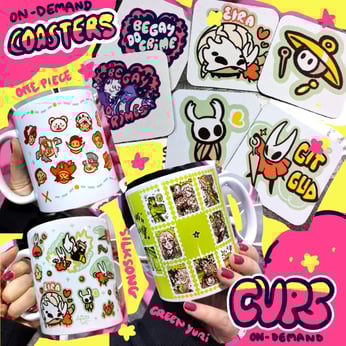 POs OP, Green Yuri and Silksong cups and Coasters!